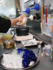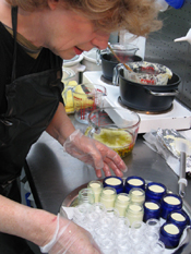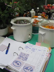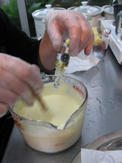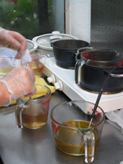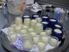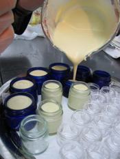 adding the oils | pouring the creams into jars | ||||||||||||||||||